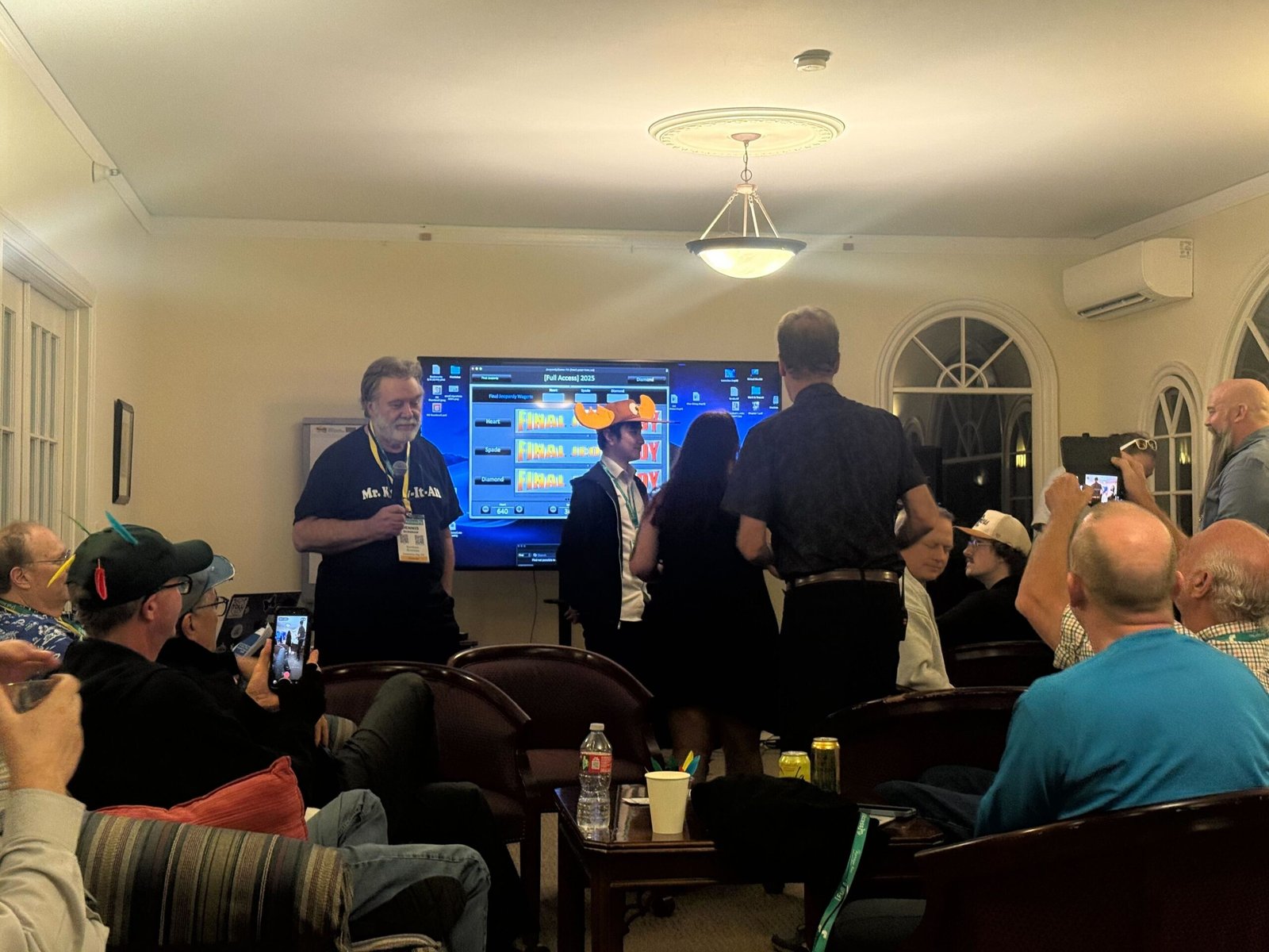 I Lost My Shi(r)t on Jeopardy. One of the highlight evening activities during our gathering was a FileMaker built Jeopardy game, provided and facilitated by Dennis Burnham with cohost David (Sully) Sulivan. As the game progressed, things got a little wild, filled with unexpected twists and turns, and a great amount of fun was had by everyone involved.